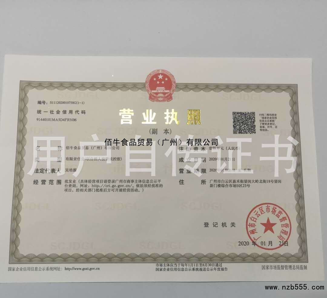 榮譽(yù)資質(zhì) 佰牛食品貿(mào)易(廣州)有限公司