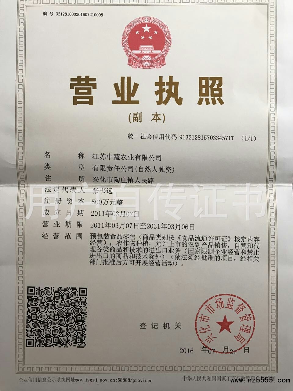 預包裝食品零售(商品類別按《食品流通許可證》核定內容經營);農作物種植,允許...