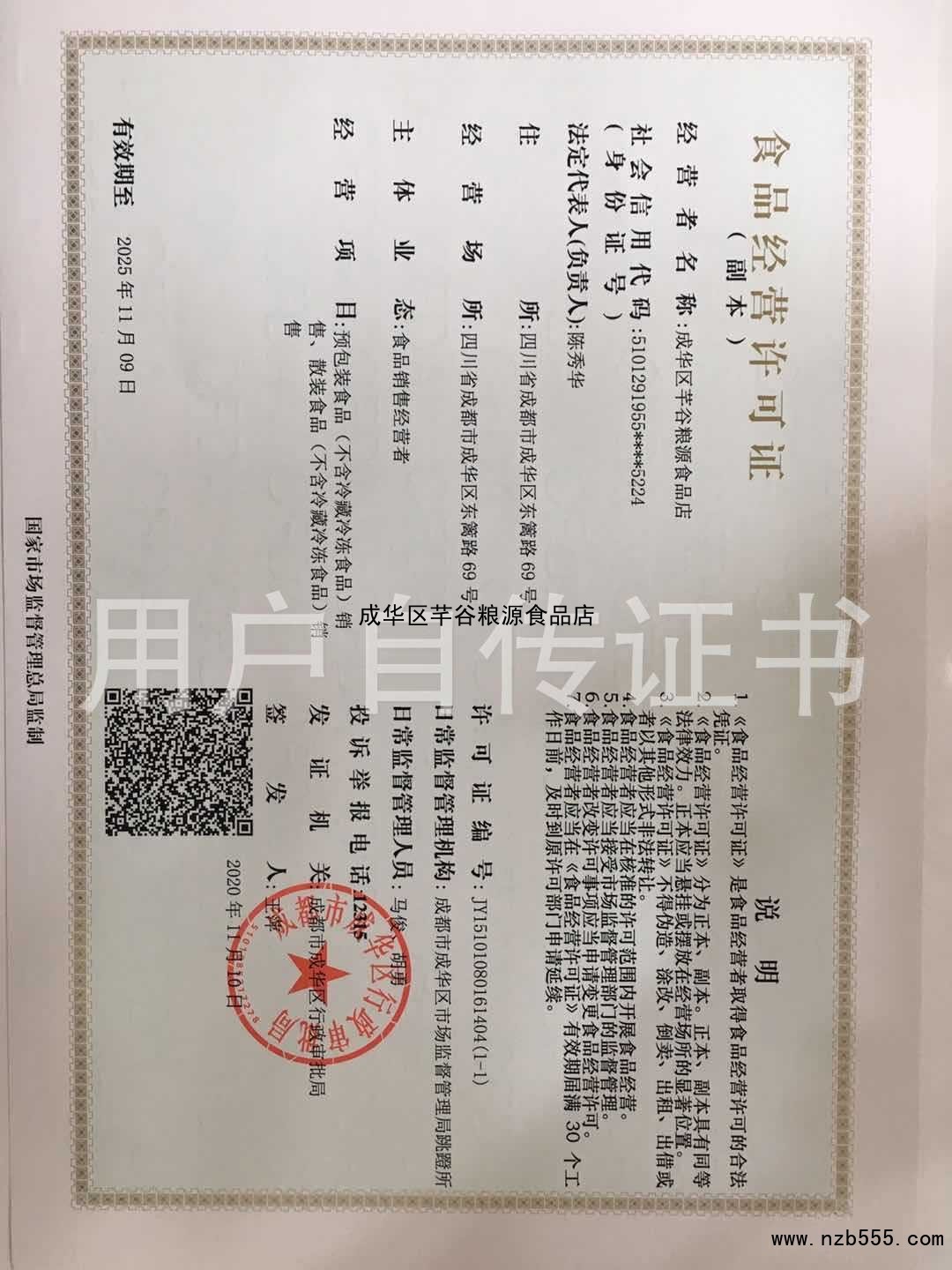 食品經營許可證(除乳制品、嬰幼兒配方乳粉、酒之外的生產許可證)