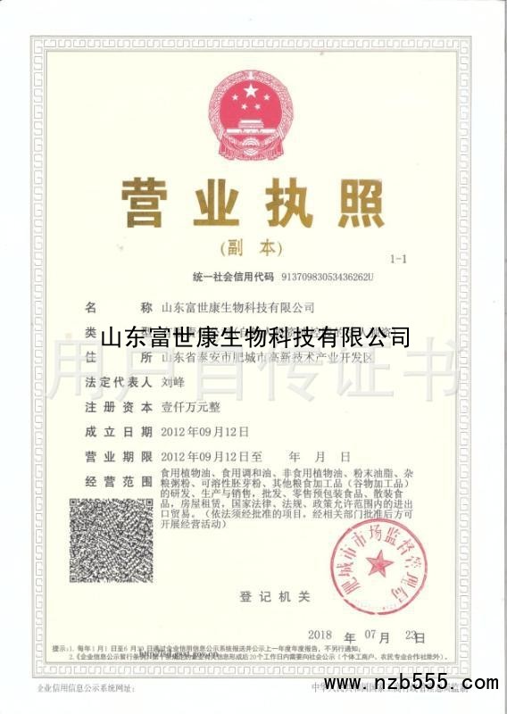 | 發(fā)證機(jī)構(gòu): | 肥城市市場監(jiān)督管理局 | 發(fā)證時間 : | 2018-07-23 |