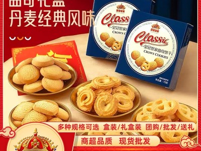 皇冠世家丹麥風味曲奇餅干奶香禮盒裝年貨送禮休閑零食品喜餅批發
