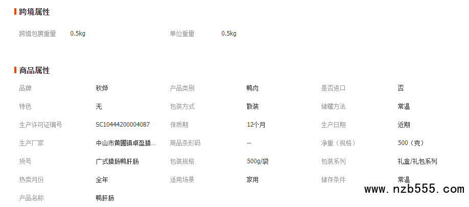 秋燁廣味臘腸鴨肝腸禮盒裝 煲仔飯廣式特產(chǎn)臘腸500g鴨肝腸禮品裝