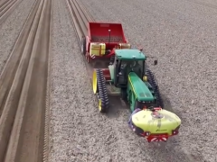 機械化播種土豆作業,一次播種4行,一個小時播種40畝